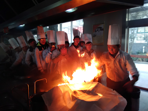 为了进一步做好我校学生安全教育,提高学生专业实践操作时应对突发事件的能力12月23日上午10:00,学生处联合烹饪旅游系在烹饪实训室对烹饪专业学生进行了专业安全知识以及注意事项的讲解,并针对烹饪过程中油锅起火的突发情况,运用灭火毯进行了现场灭火演示,并让学生亲自操作演练,起到了很好的教育效果。