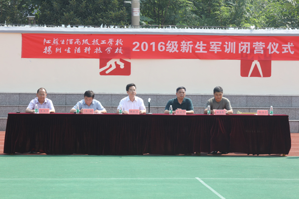 9月9日上午,我校在东操场隆重举行2016级新生军训闭营仪式。校党委书记李东岩,副校长袁建中,纪委书记吴健,烹饪旅游系副主任肖德军,军训总教官田圣兵出席大会。会操表演由学生处主任张海震主持。