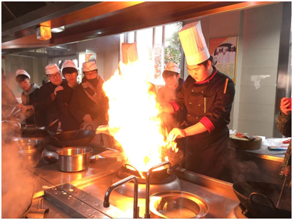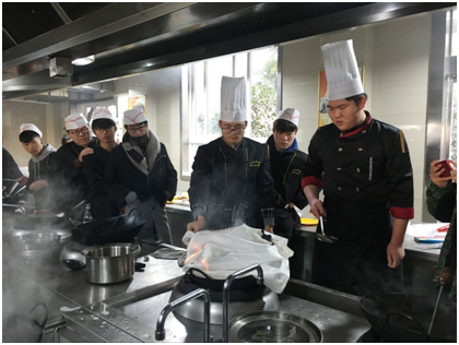 为做好我校学生安全教育,提高学生专业实践操作时应对突发事件的能力,12月26日上午,学生处联合烹饪旅游系在烹饪实训室对烹饪专业学生进行了专业安全知识以及注意事项的讲解,并针对烹饪过程中油锅起火的突发情况,运用灭火毯进行了现场灭火演示,并让学生亲自操作演练,起到了良好的教育效果。
