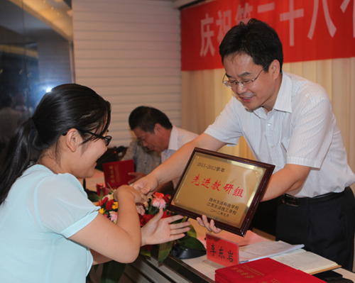 先进集体代表朱年主任、先进个人代表潘恩骥老师分别在会上发言。