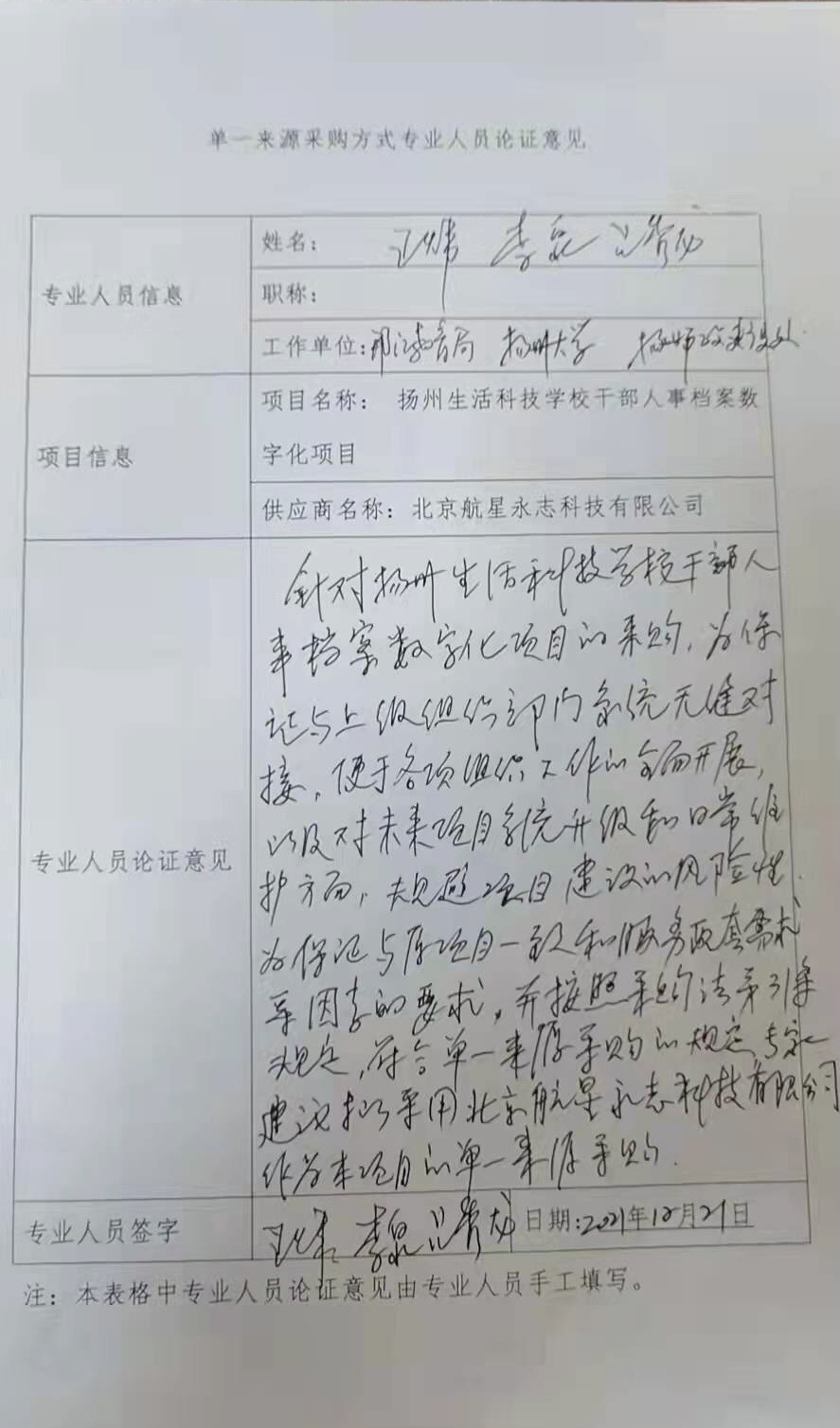 扬州生活科技学校干部人事档案数字化项目