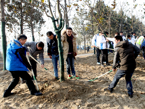 一声清脆的发令枪声响彻宋夹城体育休闲公园上空,公园内旌旗猎猎、口号震天,各个长跑方阵步履坚实,意气风发,沿着既定线路向前跑去。经过20余分钟健身跑,参加活动人员完成了2.5公里长跑路程。随后,我校师生在植树区挥锹培土,为公园栽下片片新绿。