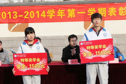 会上,教务处主任刘长林同志宣读了2013-2014学年第一学期奖学金表彰文件;学生处主任张海震同志宣读了2013-2014学年第一学期先进集体及个人表彰文件;团委副书记鲁宁同志宣读了2013-2014学年第一学期团委表彰文件。
